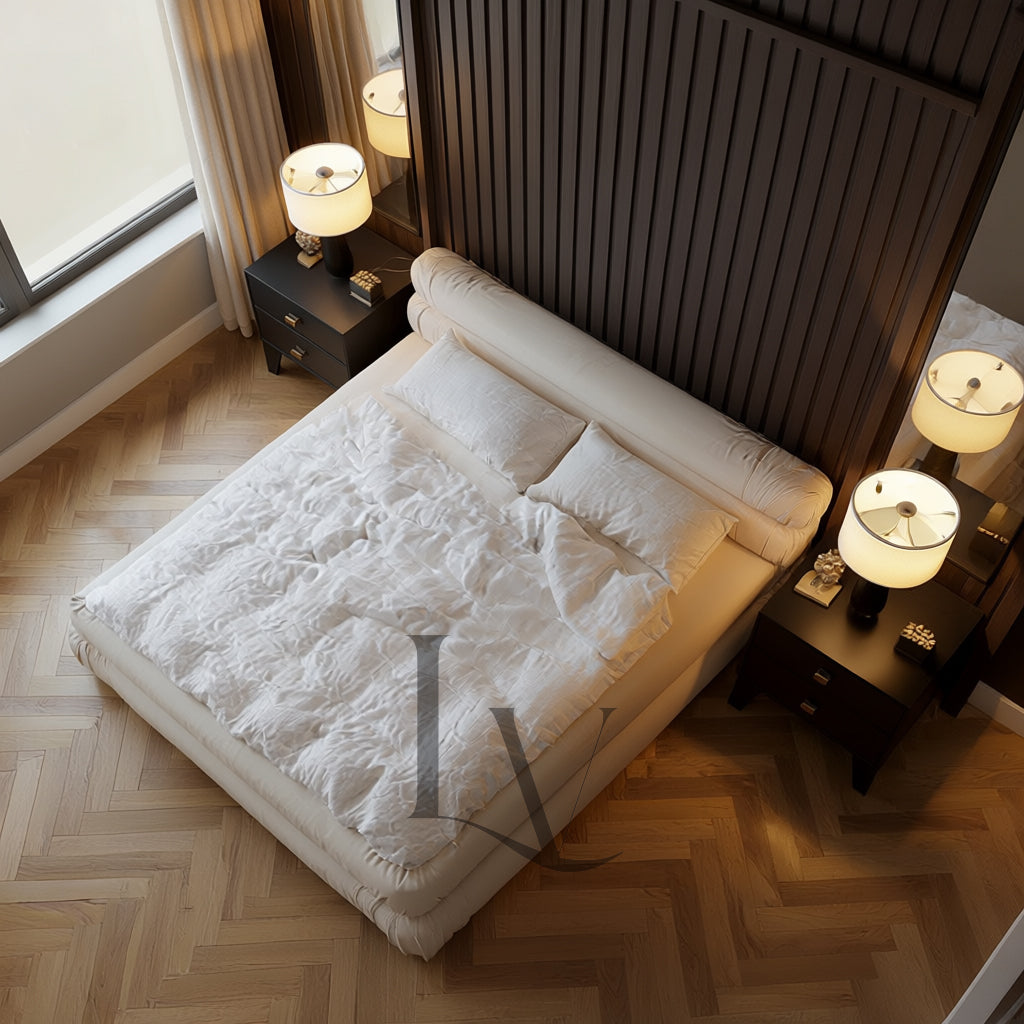 The Aura Bedframe is the definition of contemporary minimalism blended with effortless luxury. Designed with a smooth, cloud-like silhouette, this bed instantly elevates any bedroom into a calming, boutique-hotel sanctuary.