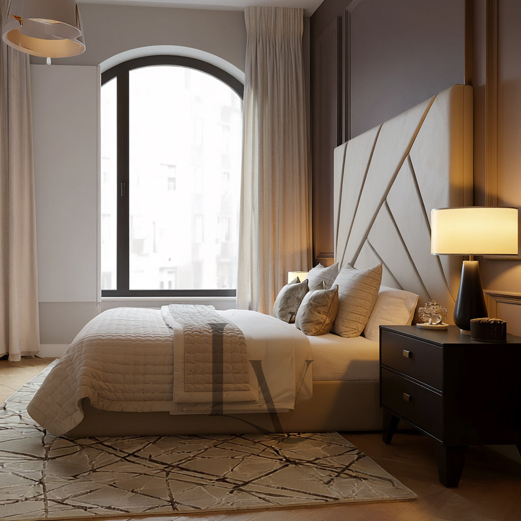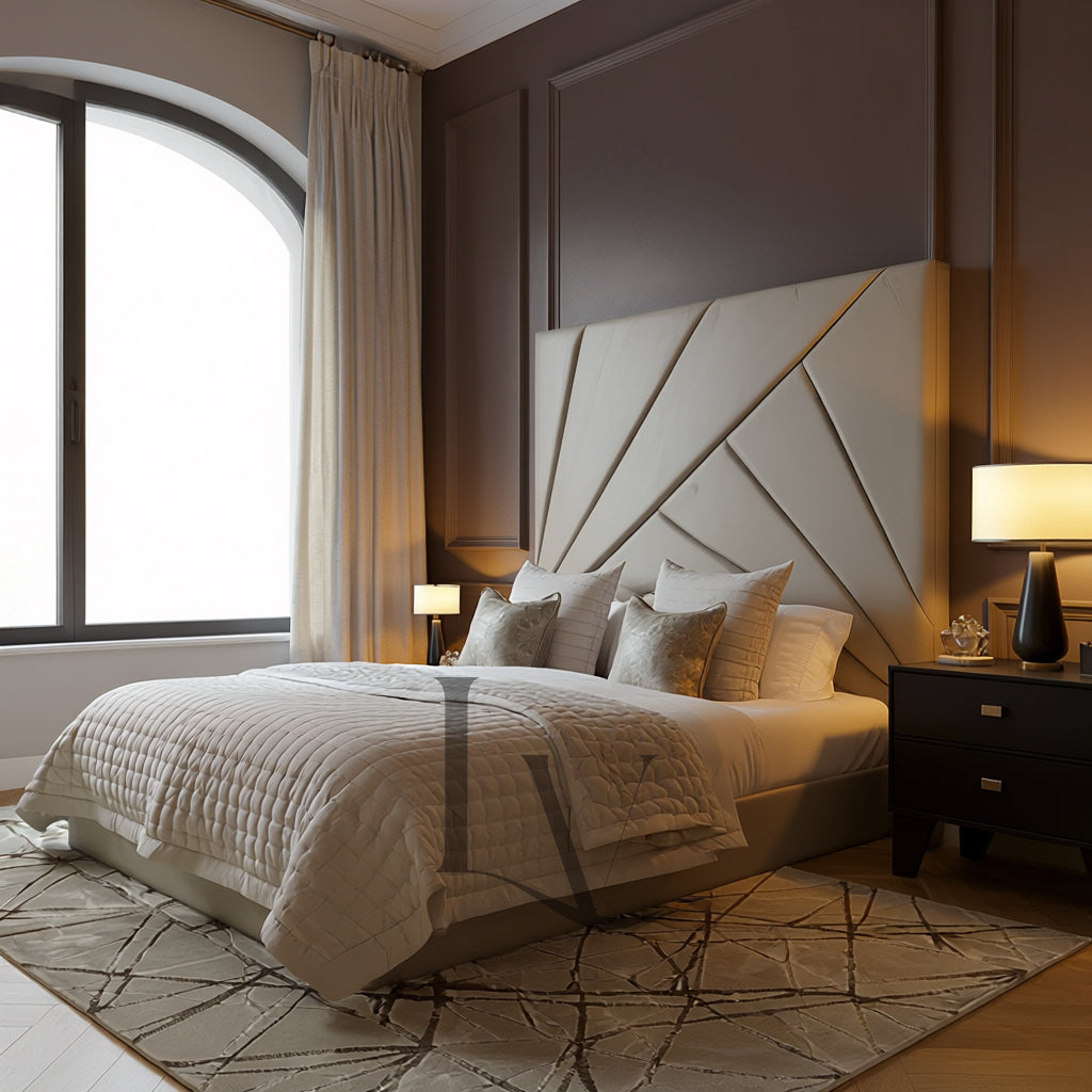 Architectural Geometric Headboard — A striking masterpiece designed to create visual depth and luxury.