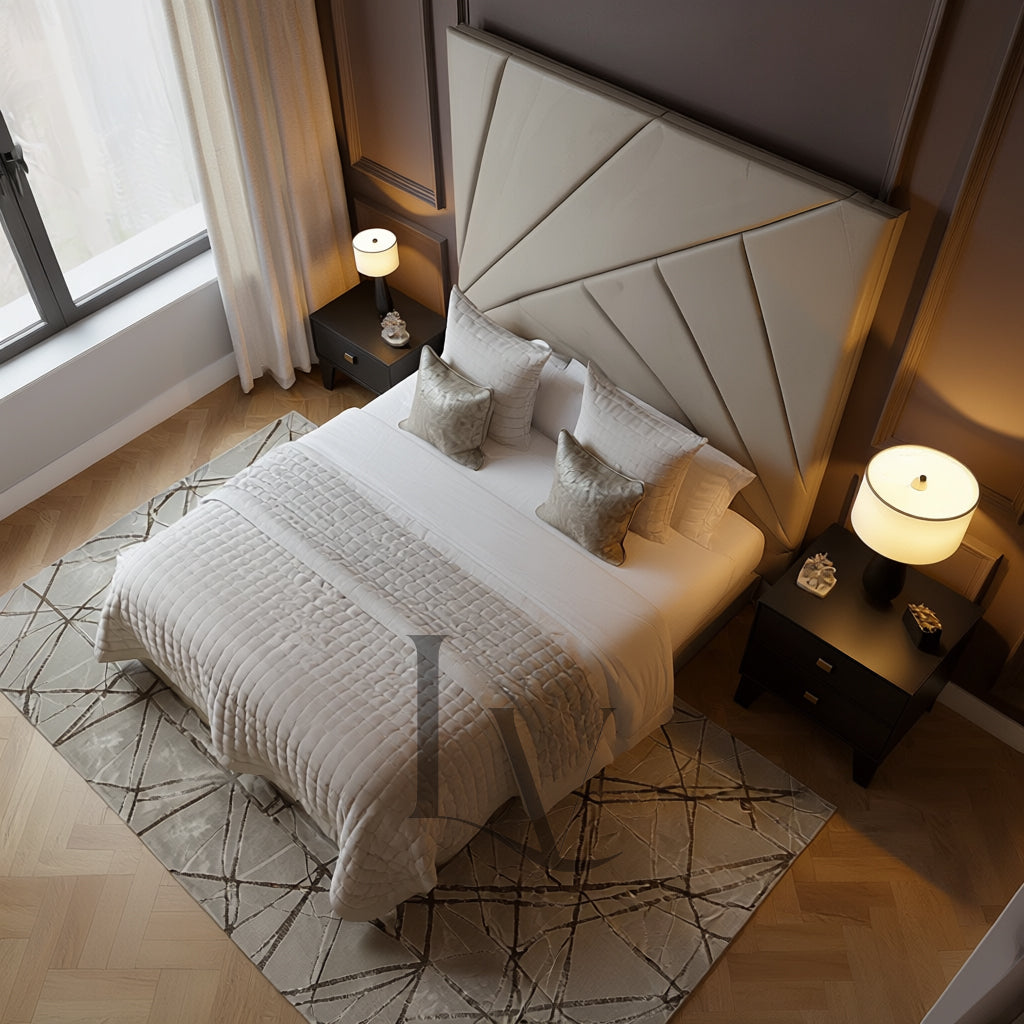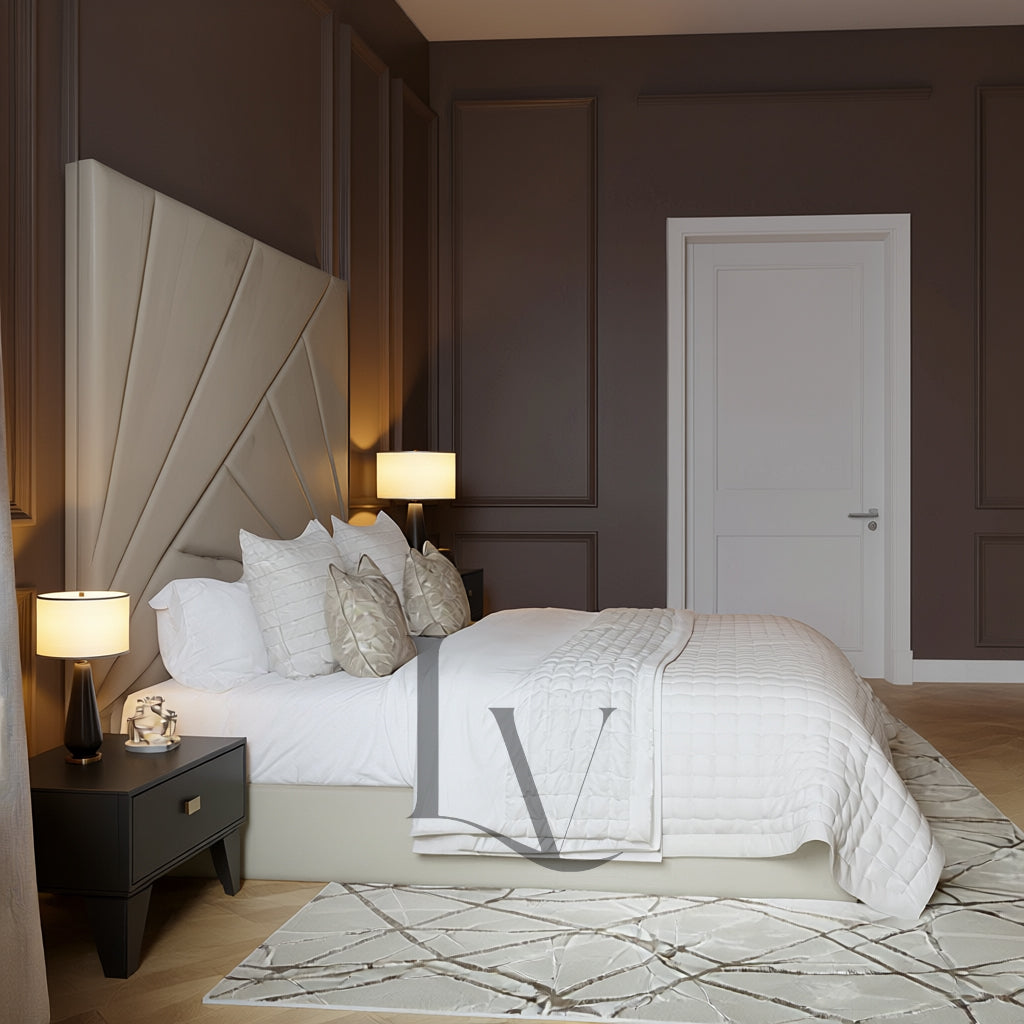 Introducing The Enzo Bed, a show-stopping statement piece crafted for interiors that demand presence, luxury, and architectural beauty. Designed with a bold, sculpted headboard featuring sharp geometric panelling, the Enzo instantly elevates any bedroom into a space of refined sophistication.