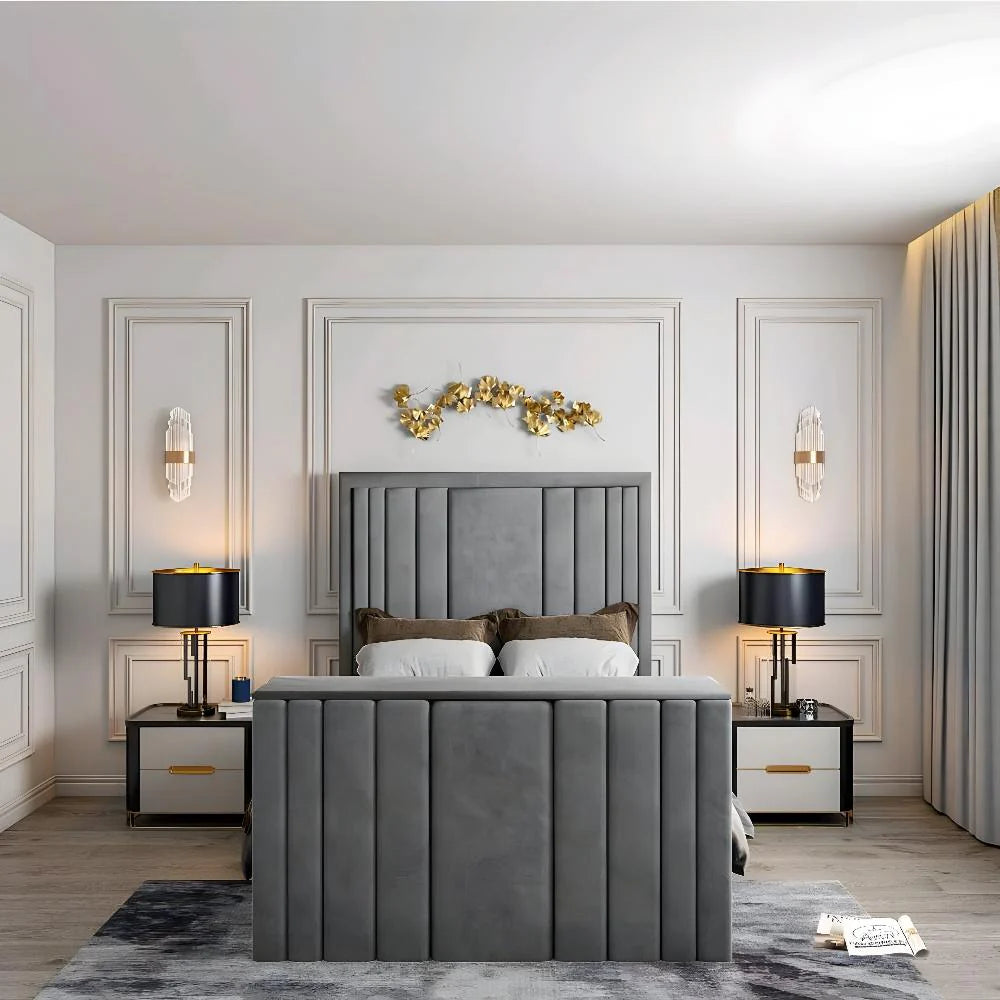 The Harper TV Bed is crafted for those who favour clean lines, contemporary elegance, and the effortless integration of entertainment into their bedroom. Featuring a tall, structured headboard with refined vertical panelling, the Harper delivers a bold architectural presence that transforms your space into a modern sanctuary.