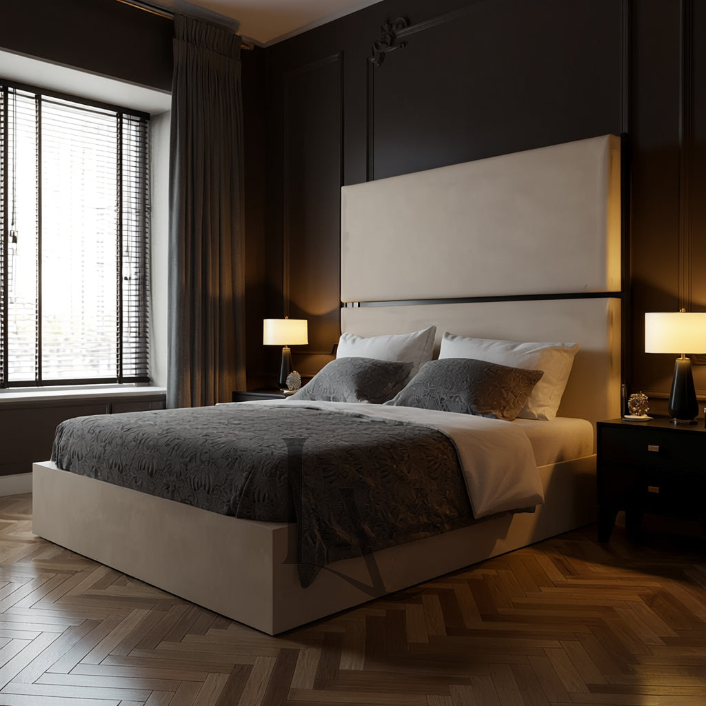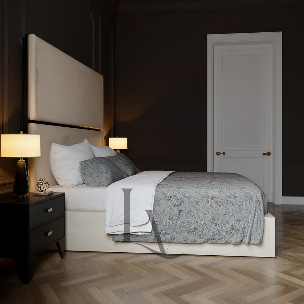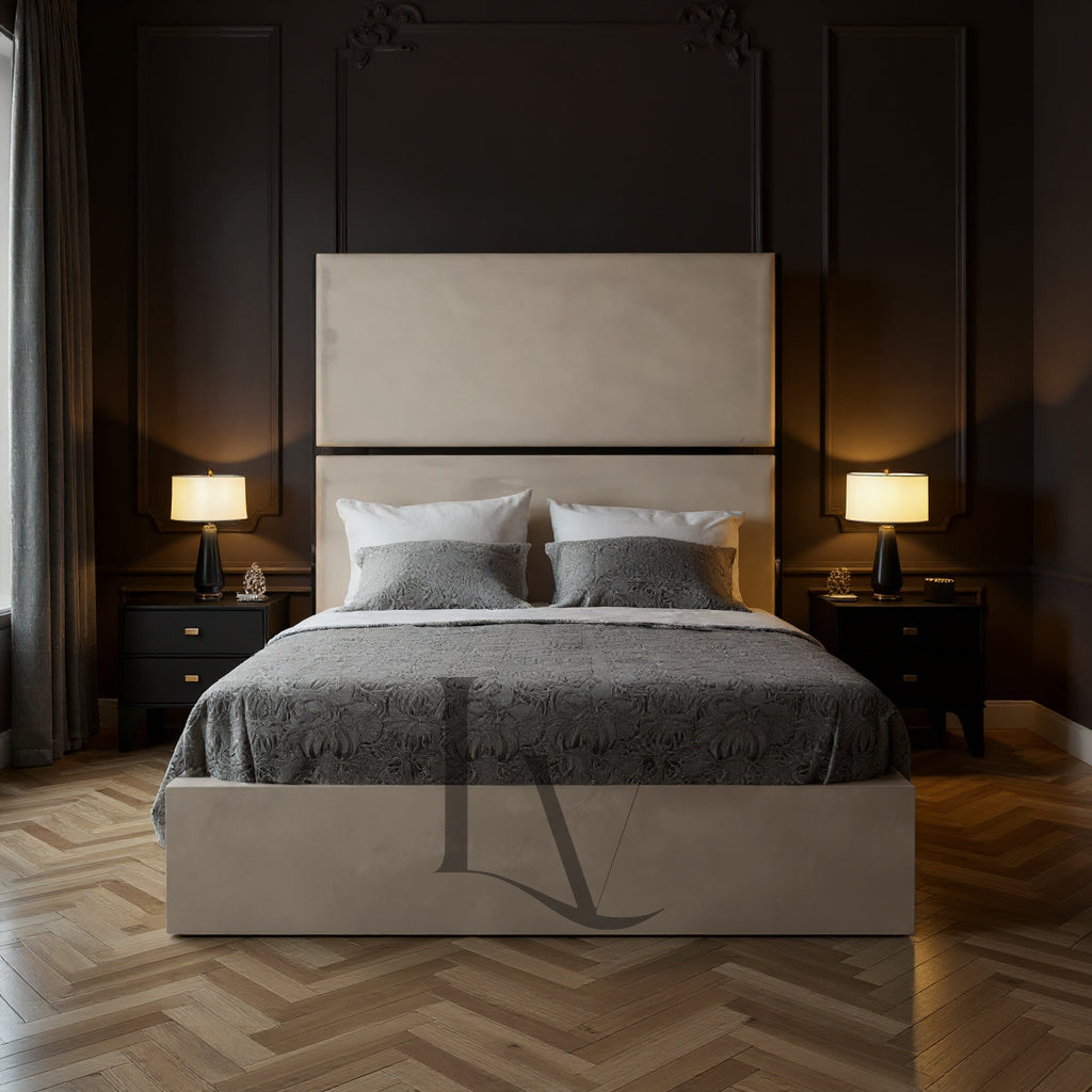 Discover The Alessia, a breathtaking centrepiece crafted for interiors that command sophistication and timeless beauty. With its grand headboard, smooth upholstery, and signature glossy trim detailing, this bed embodies the perfect fusion of modern refinement and classic charm.
