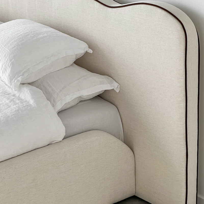 Hand-crafted in the UK, the Wave Bed features a smooth, continuous silhouette from headboard to footboard, upholstered in premium fabric for an ultra-refined finish. Every curve is engineered for visual harmony, transforming your space into a serene, spa-like retreat.