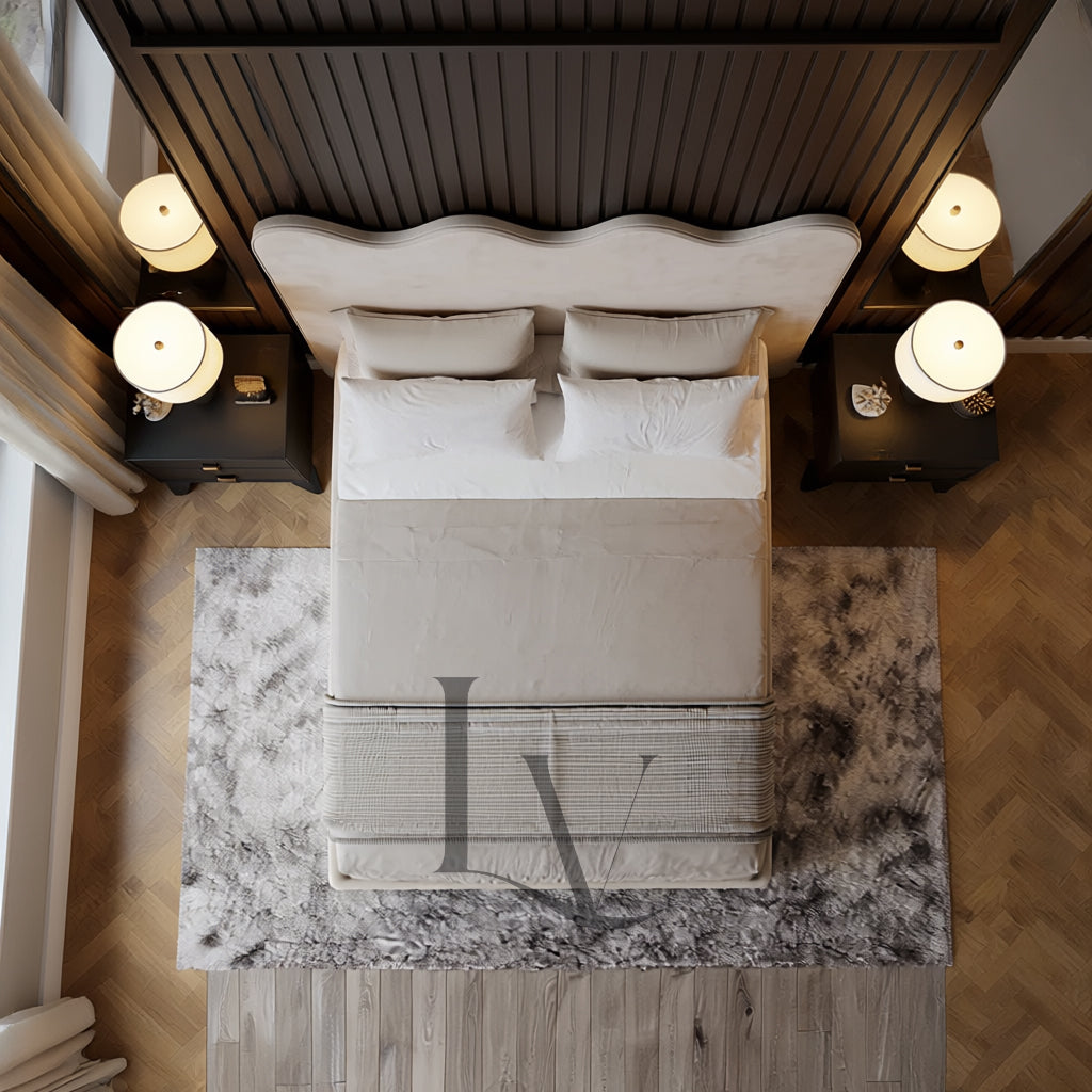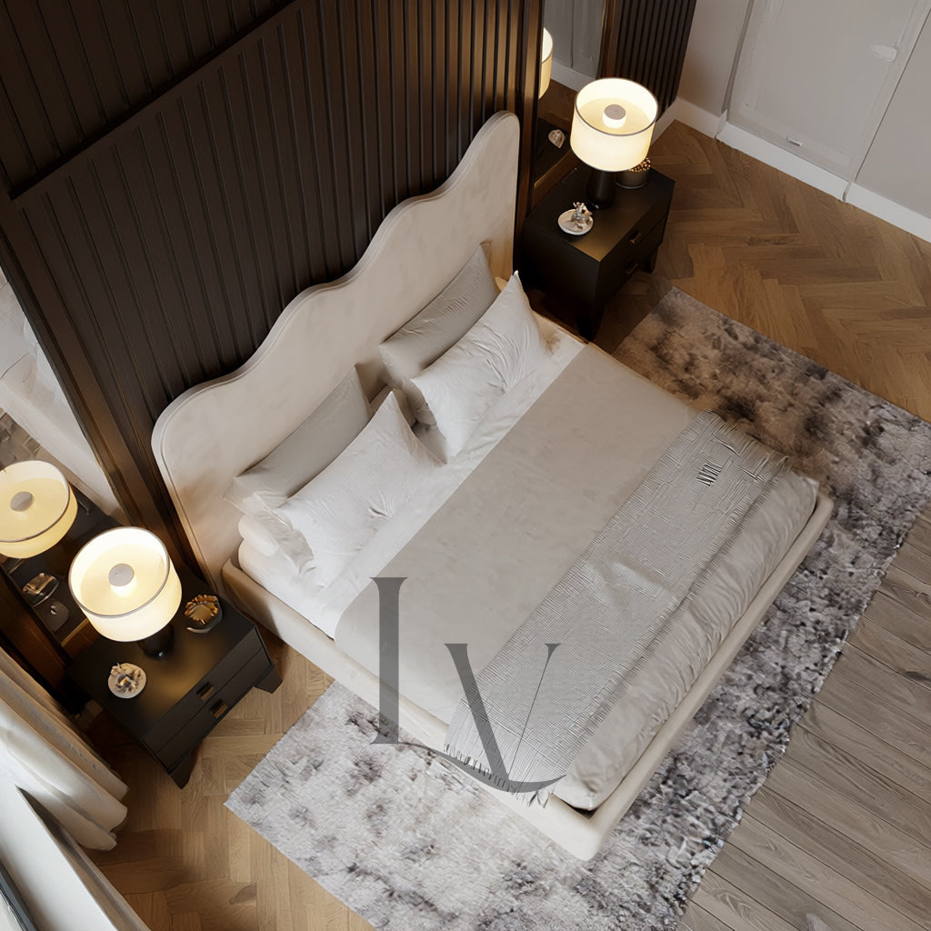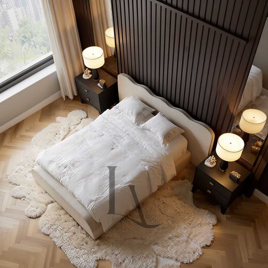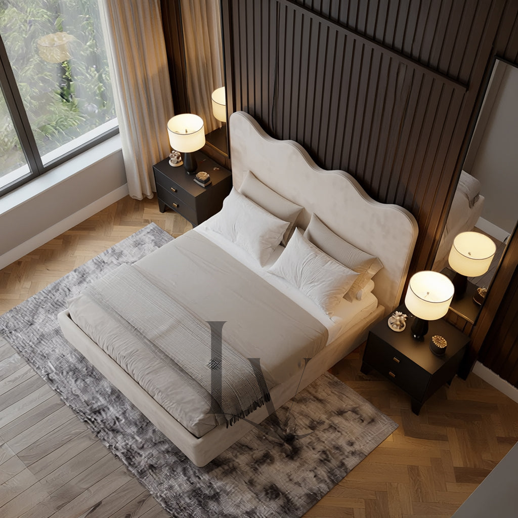 The Elise Bed is a statement of soft luxury, designed for homeowners who appreciate subtle curves, refined detailing and a calming bedroom aesthetic. Its signature wavy scalloped headboard adds a gentle, artistic silhouette that instantly elevates any space, creating a focal point that feels both modern and timeless.