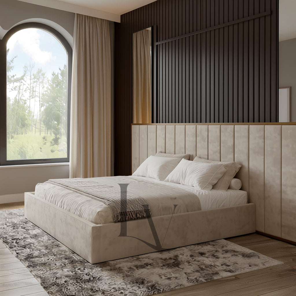 Introducing the Milan Bed, a statement of refined modern elegance crafted for those who desire architectural beauty in their bedroom. Designed with a commanding full-width panel headboard, the Milan brings hotel-suite opulence directly into your home.