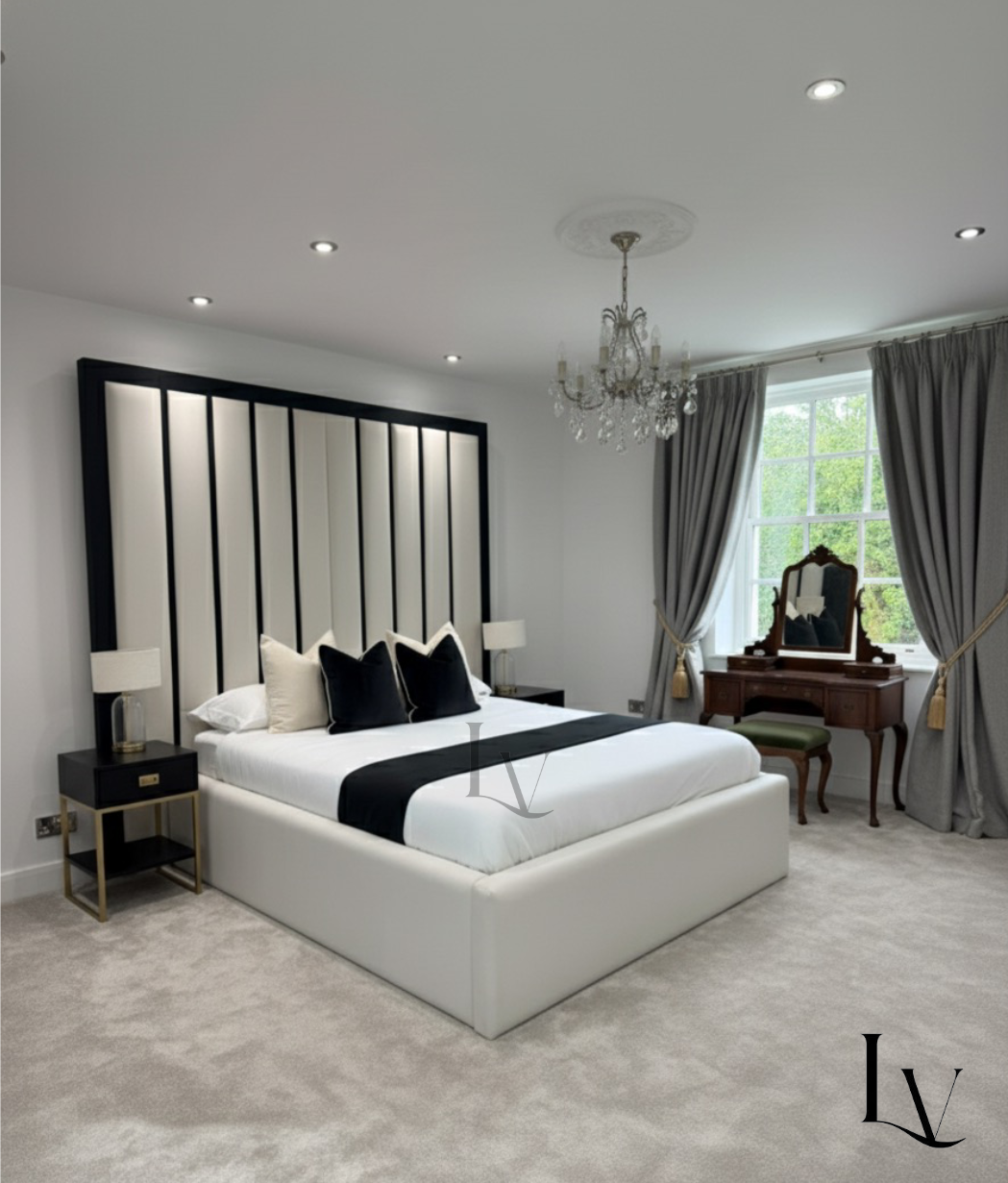 The headboard, showcased at an impressive 80 inches high, serves as a grand focal point—ideal for those who appreciate luxurious proportions and modern design. For a tailored touch, the headboard height can be customised to suit your personal space and style preferences.