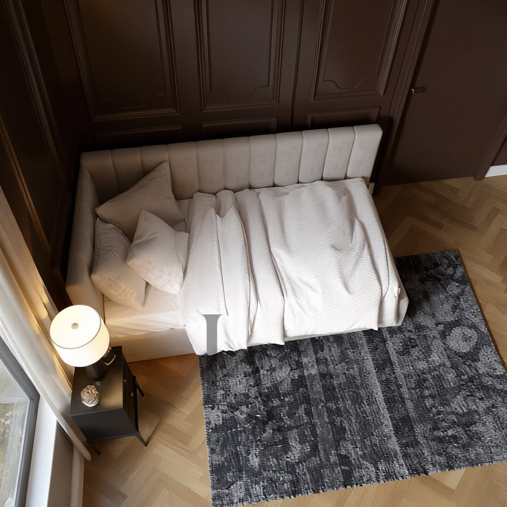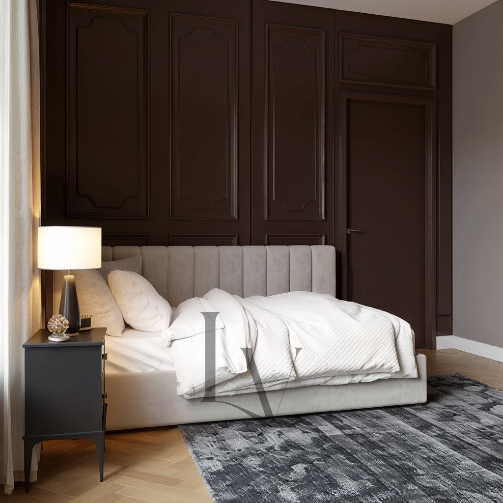 Crafted with deep vertical channel upholstery, the Lilia offers a clean, structured aesthetic that elevates any bedroom. The generous side wings not only frame the mattress beautifully but also add a sense of privacy and boutique-hotel sophistication.