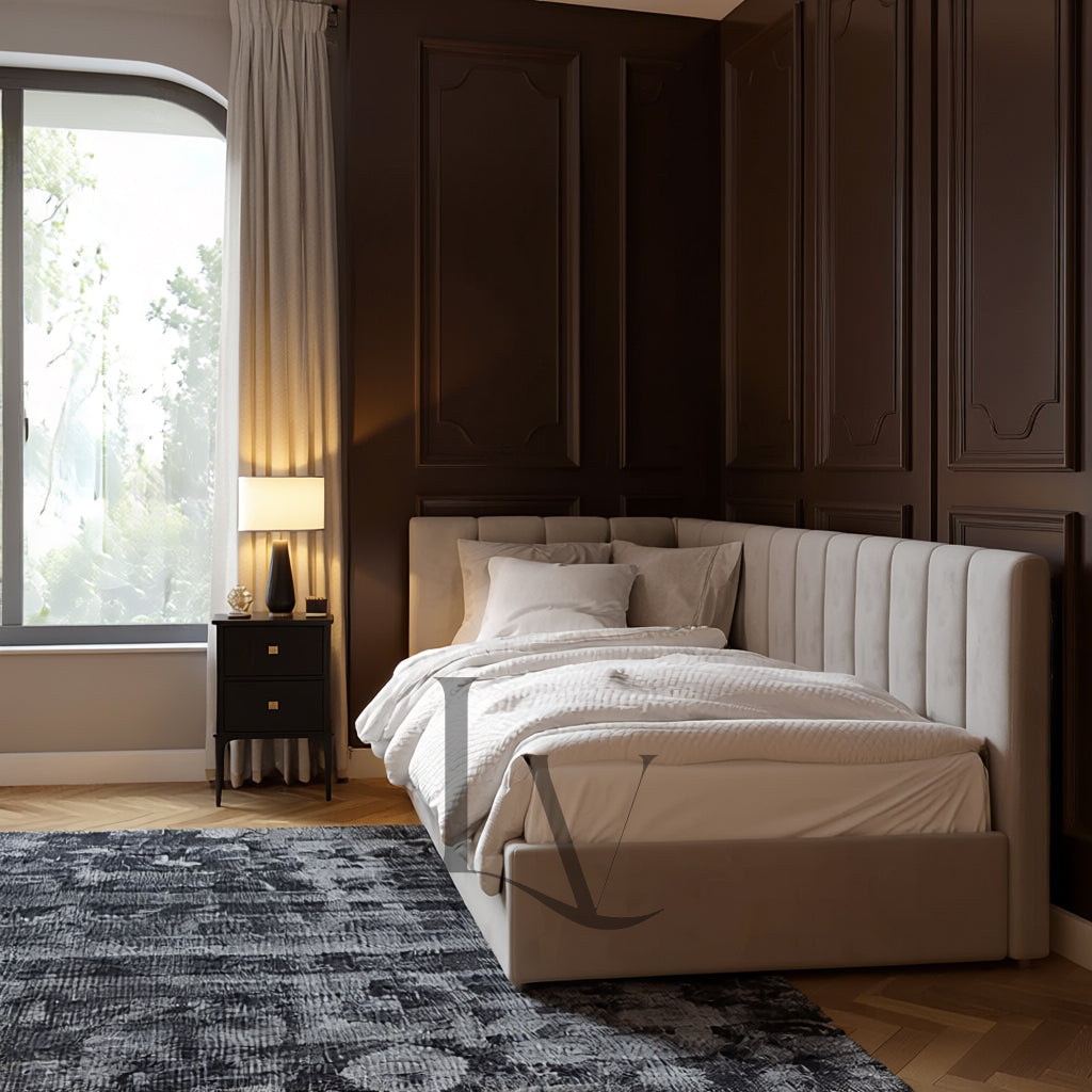 The Lilia Bed is where modern elegance meets soft, sculpted luxury. Designed with a distinctive wrap-around winged headboard, this piece creates an intimate, cocoon-like feel — perfect for those who want both comfort and a bold design statement.