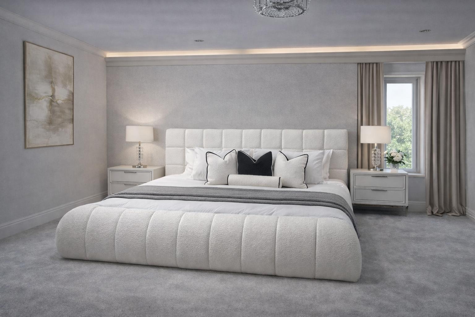 Soft, sculptural, and effortlessly refined, The Lumière Bouclé Bed is designed to bring a sense of calm luxury into the modern bedroom. Upholstered in a beautifully textured bouclé fabric, this bed captures light with subtle elegance, creating a warm and inviting focal point that feels both contemporary and timeless.