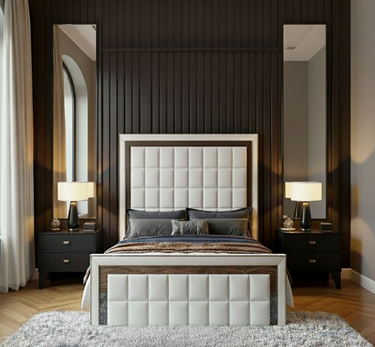 The Regent Mirror Panel Luxe Bed is a refined statement of architectural elegance and contemporary luxury. Designed to elevate the bedroom, this bed features a striking mirror-panel frame that adds depth, light, and a sense of spaciousness to your interior.
